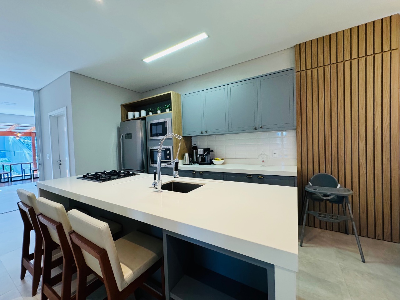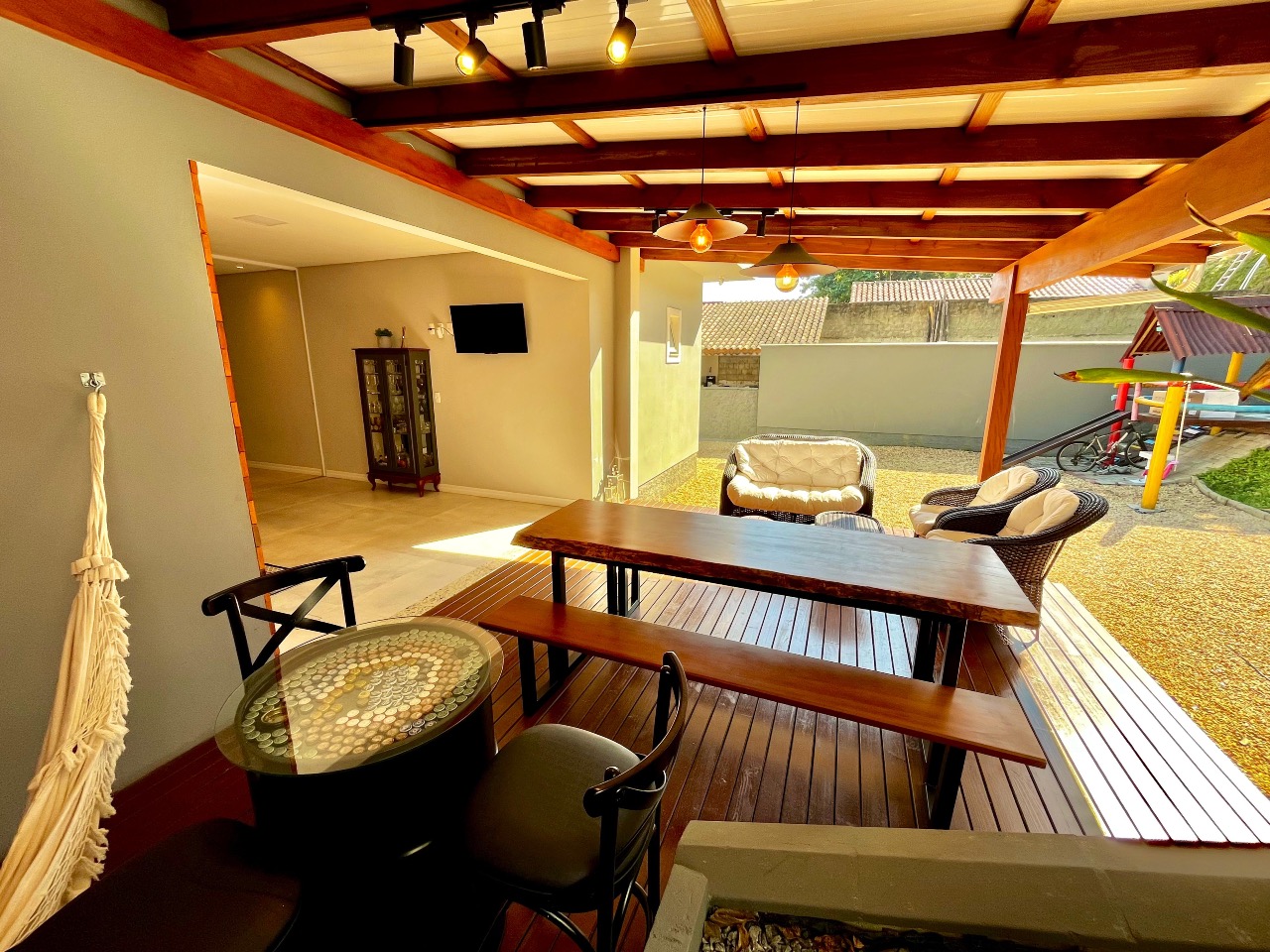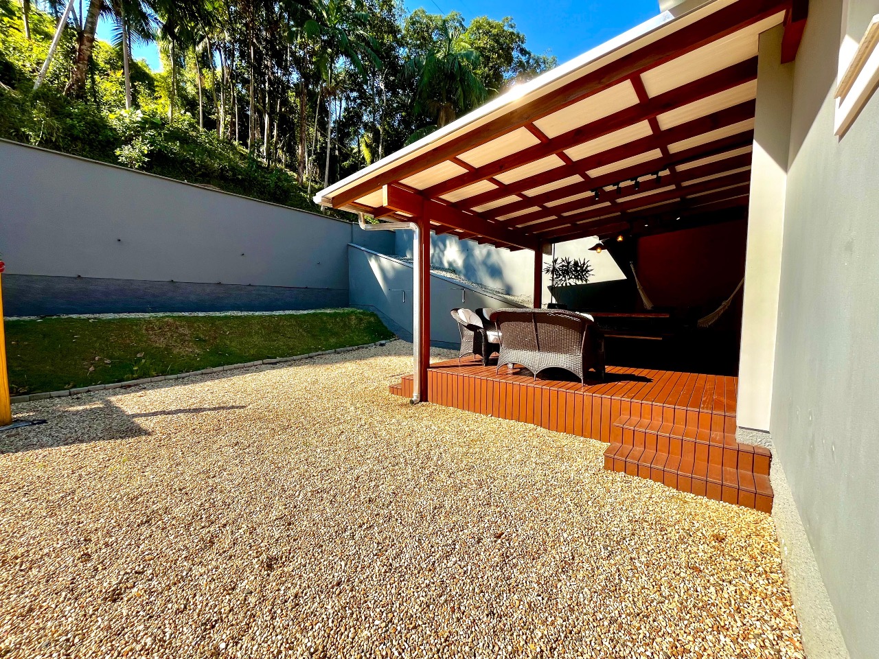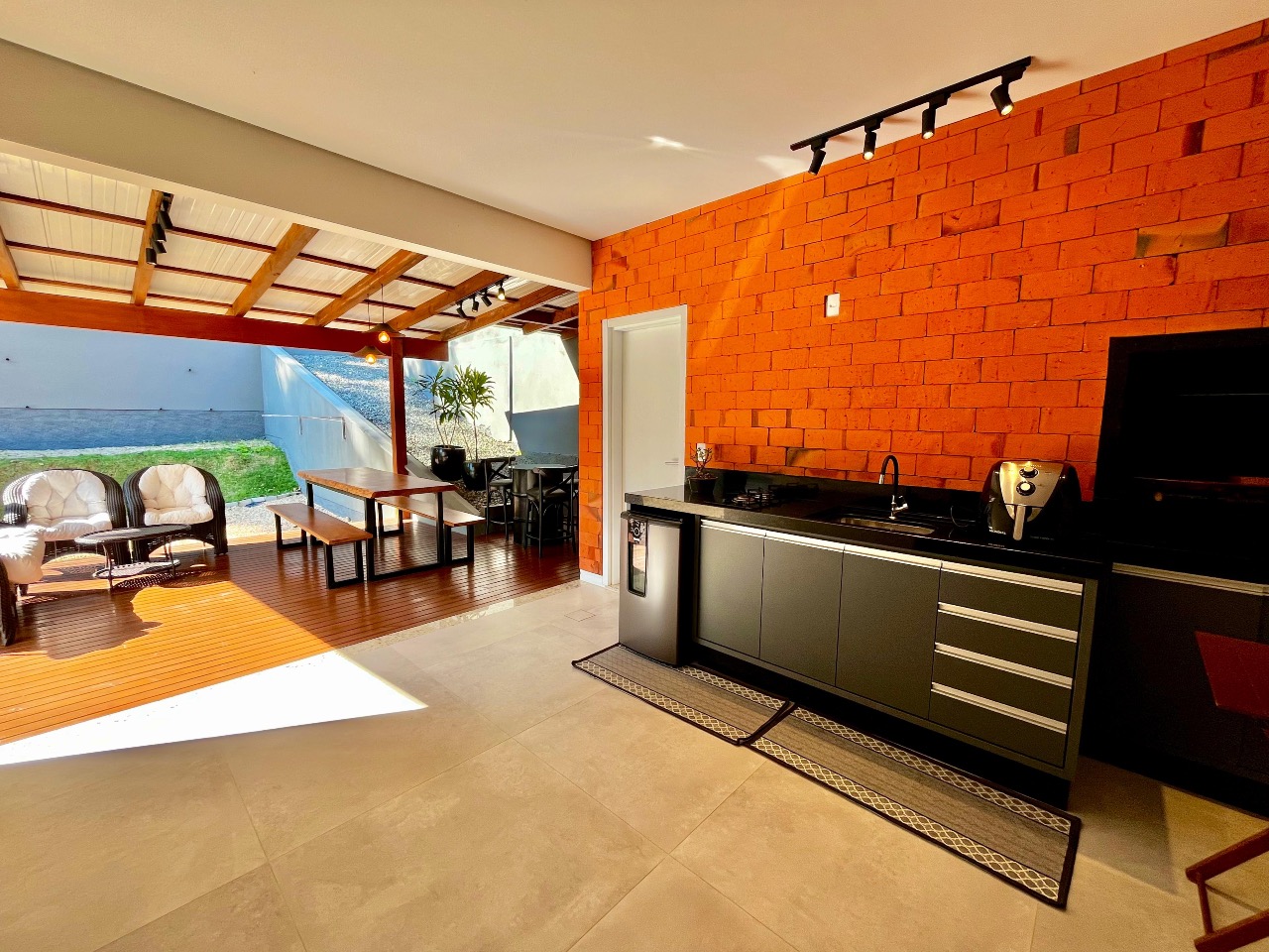 A verdadeira joia desta propriedade é a ampla área gourmet, ideal para momentos de convívio ao ar livre. Equipada com churrasqueira e espaço para refeições ao ar livre, é o lugar perfeito para desfrutar de churrascos de verão ou jantares sob as estrelas.