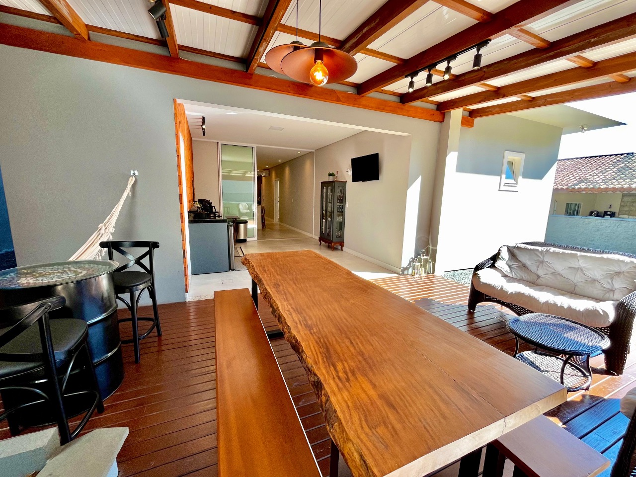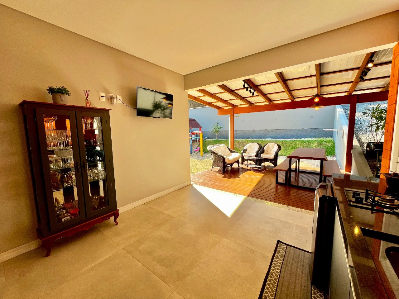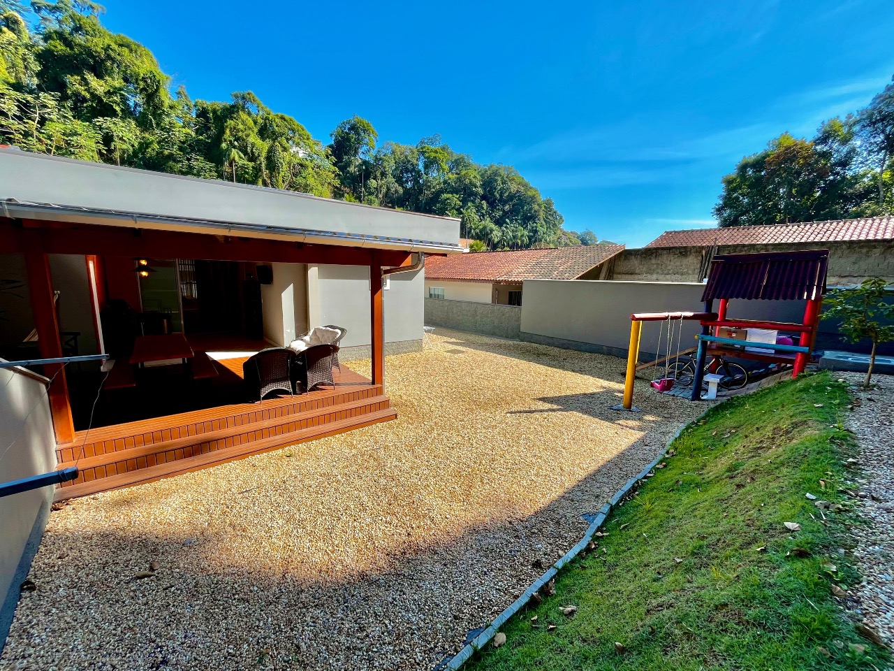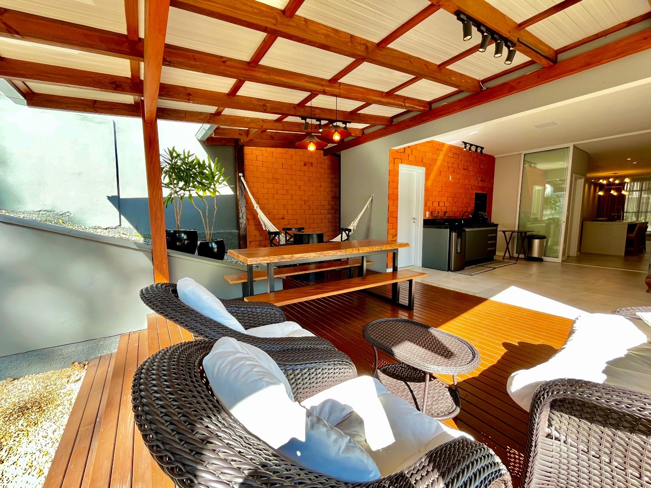 A verdadeira joia desta propriedade é a ampla área gourmet, ideal para momentos de convívio ao ar livre. Equipada com churrasqueira e espaço para refeições ao ar livre, é o lugar perfeito para desfrutar de churrascos de verão ou jantares sob as estrelas.