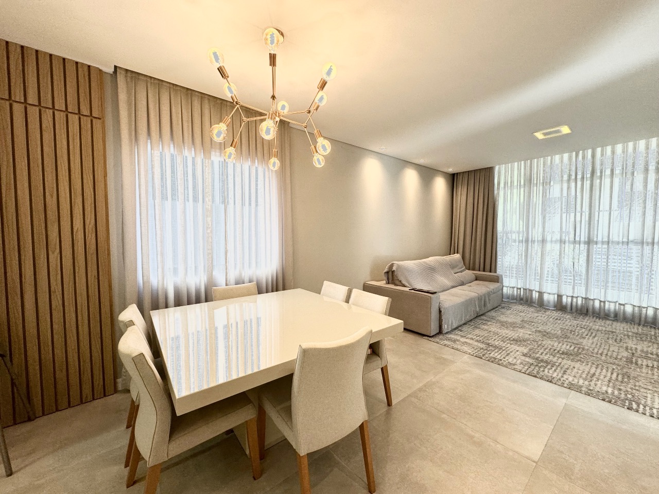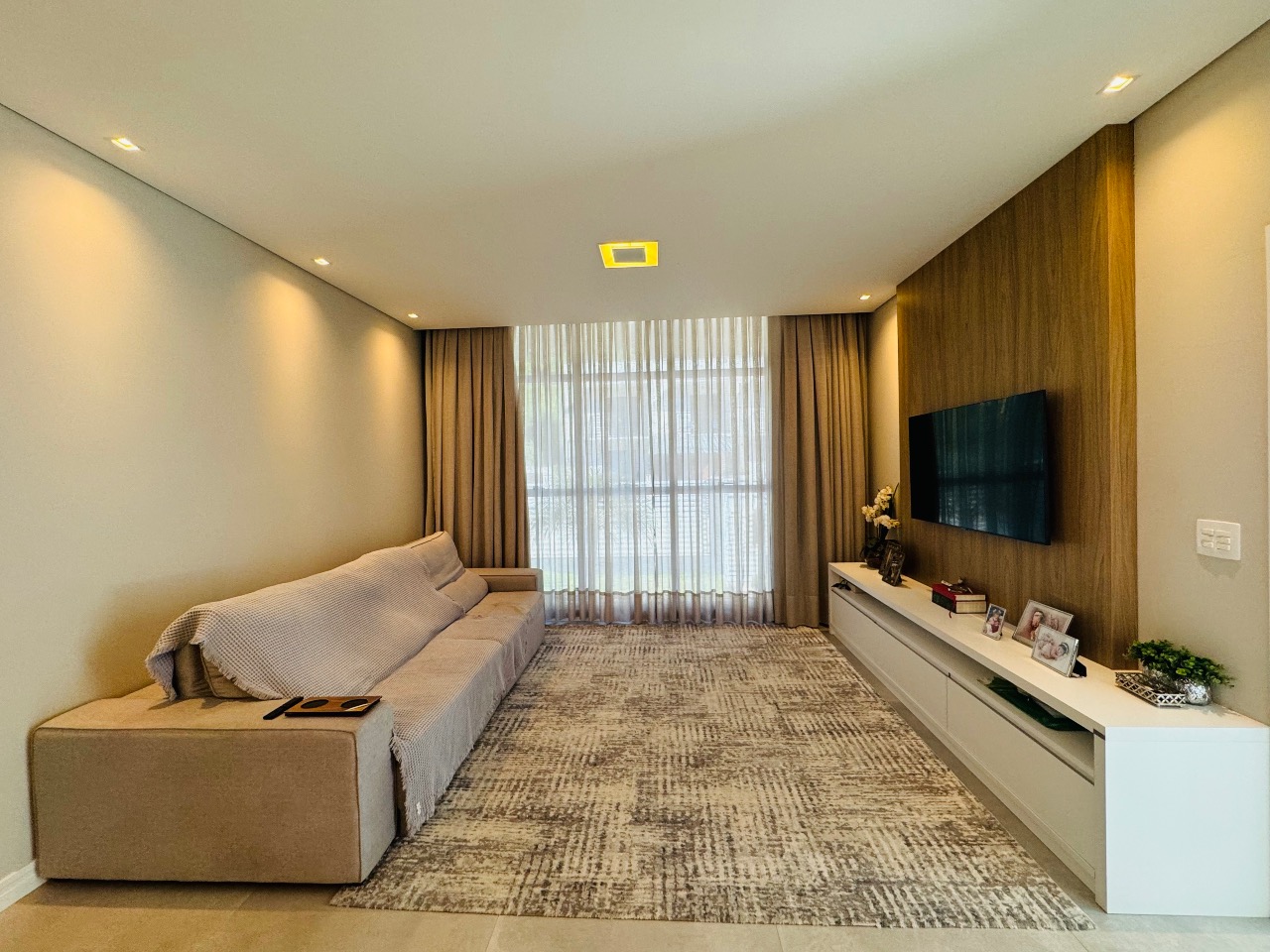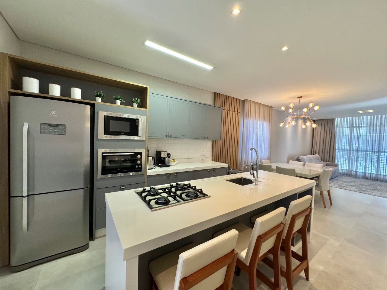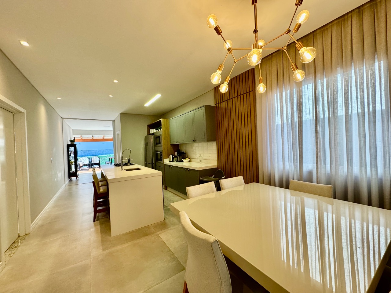 Ao entrar, você é recebido por uma espaçosa sala de estar, onde a luz natural resplandece, proporcionando uma atmosfera acolhedora. A cozinha integrada é o coração da casa, facilitando a interação entre os ambientes e criando um espaço perfeito para entreter amigos e familiares.