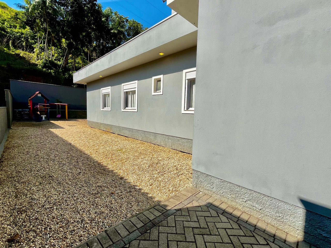 A suíte principal, um retiro privativo, oferece não apenas conforto, mas também privacidade. Os outros dois quartos são generosos em tamanho e foram projetados para acomodar confortavelmente toda a família. Além disso, todos os quartos recebem uma generosa quantidade de luz solar durante o dia, mantendo a casa sempre iluminada e arejada.