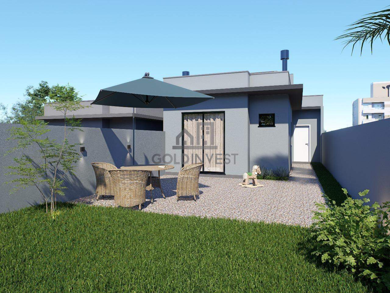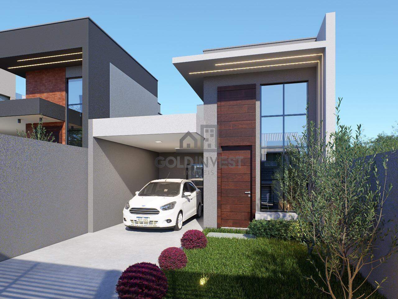 Jardim com gramado entregue na parte frontal, valorizando ainda mais a estética do imóvel.