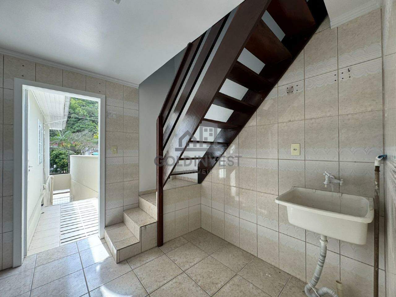 O imóvel fica no piso superior e dispõe de 3 dormitórios, banheiro social, sala e cozinha conjugada, área de serviço e um amplo espaço nos fundos.