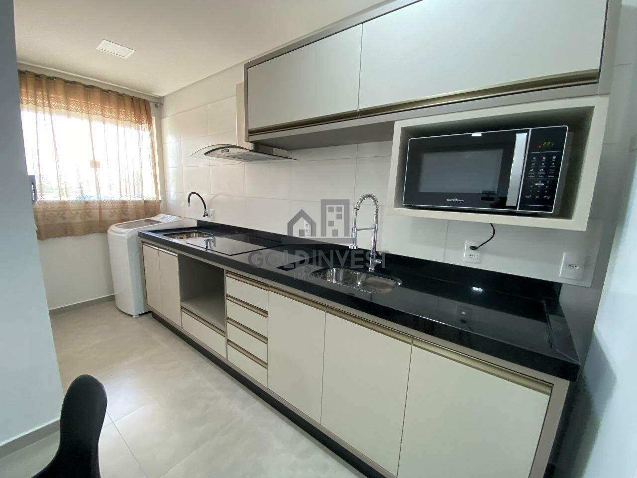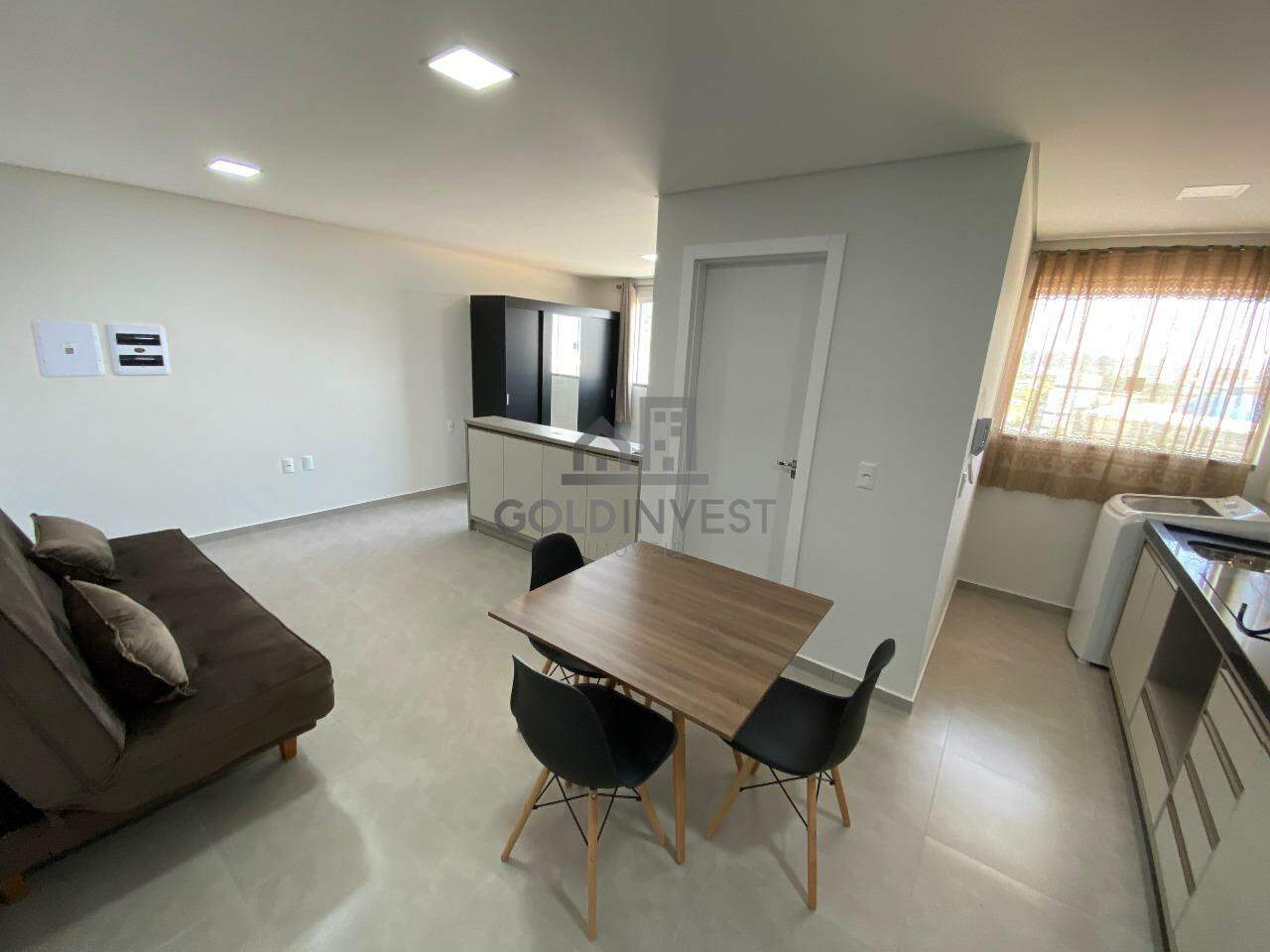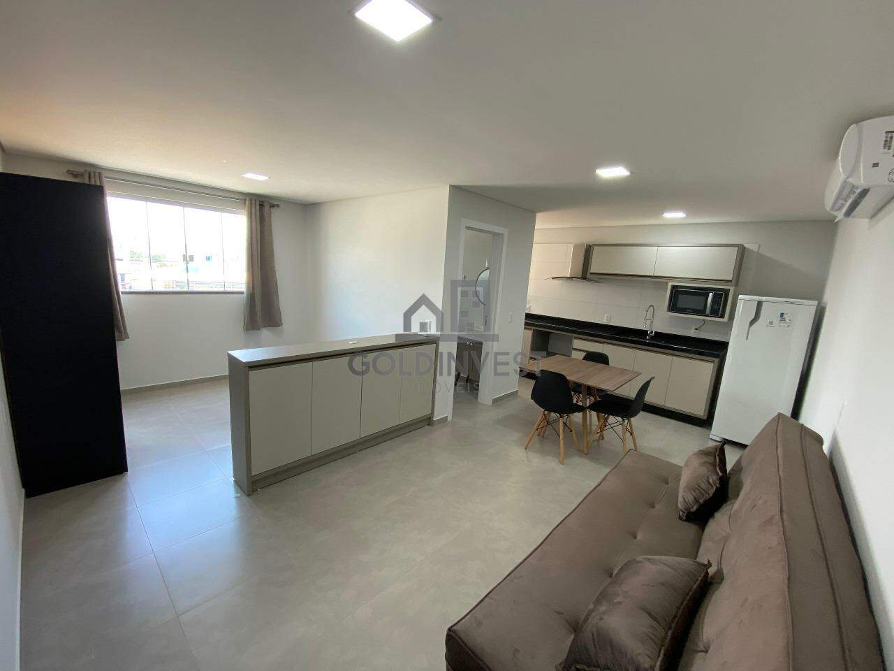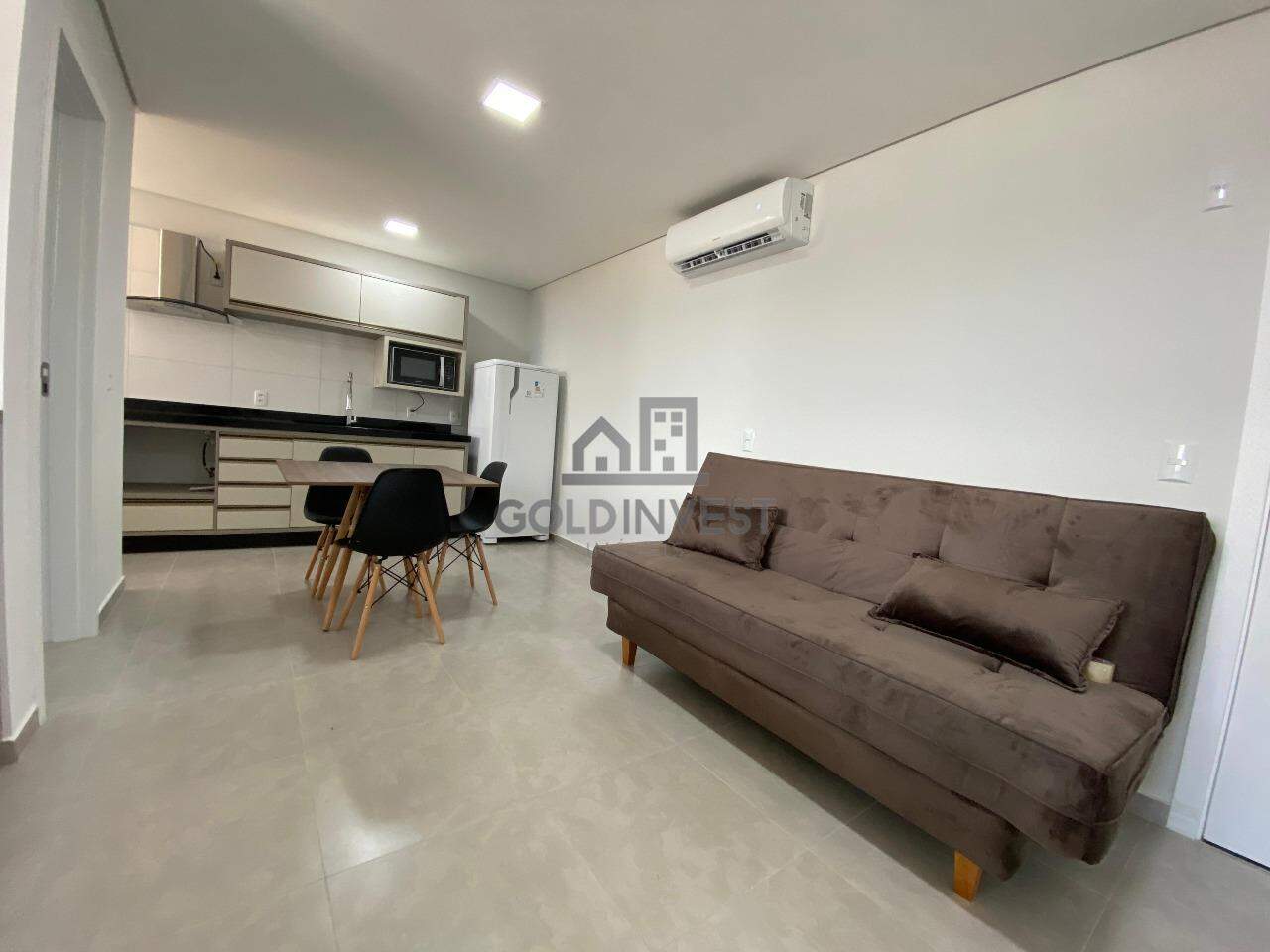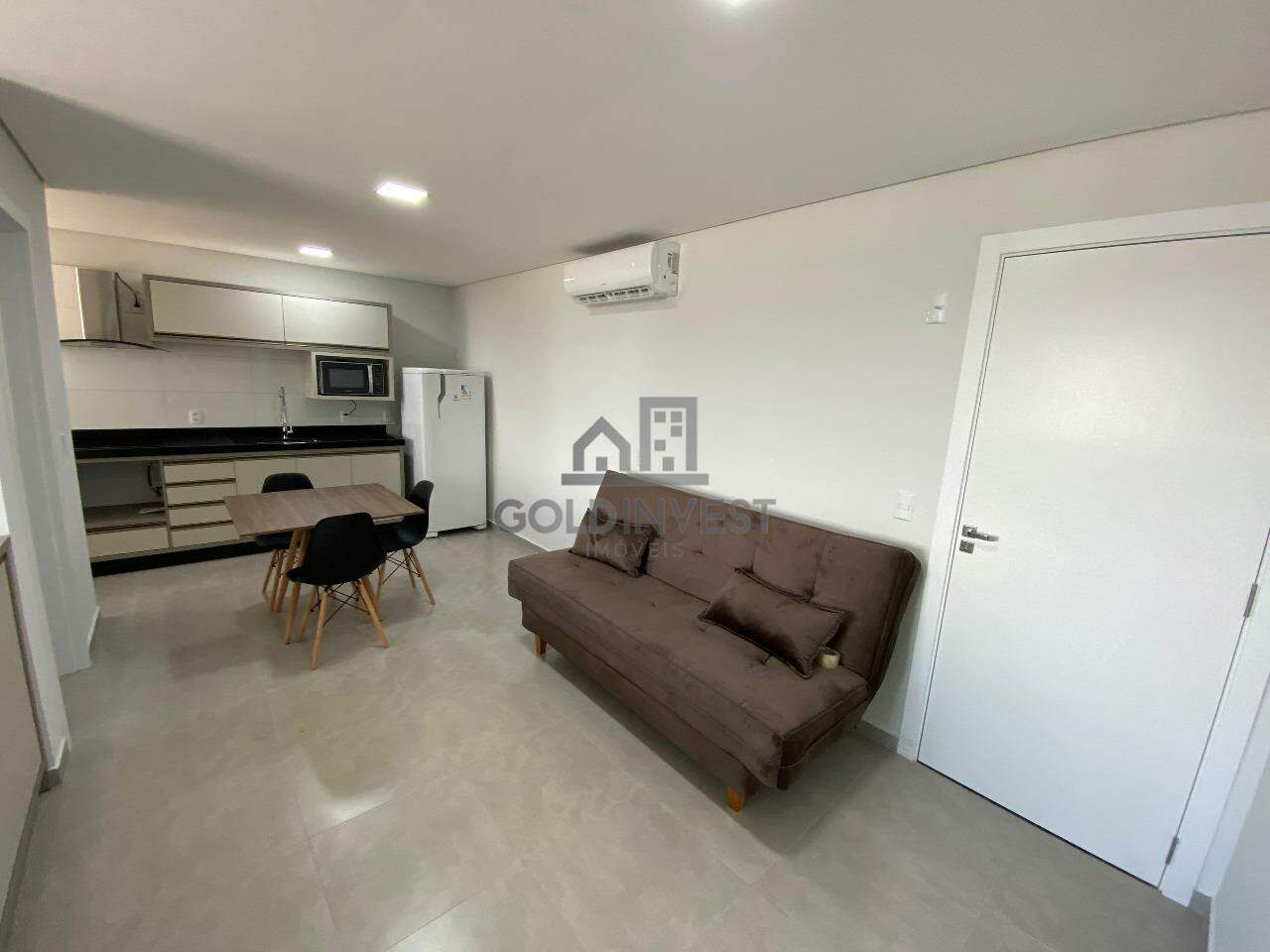 O flat é mobiliado e possui 1 dormitório, banheiro social, sala e cozinha com móveis sob medida, área de serviço, sacada e 1 vaga de garagem privativa.