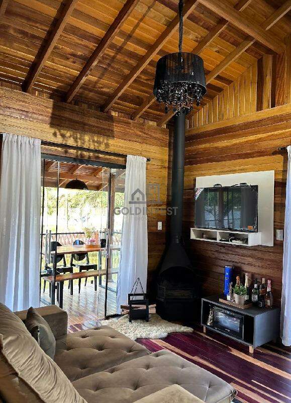 Com uma estrutura completa, o imóvel oferece uma linda casa estilo chalé, com cozinha e sala integrados, lareira e uma varanda perfeita para refeições com vista privilegiada para o lago. A área íntima conta com um quarto adicional e uma suíte aconchegante, ideal para quem busca conforto e tranquilidade.