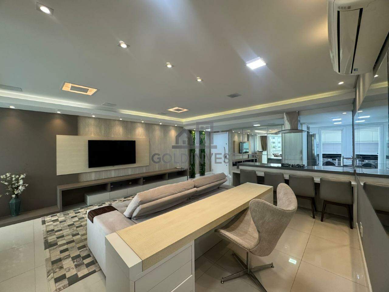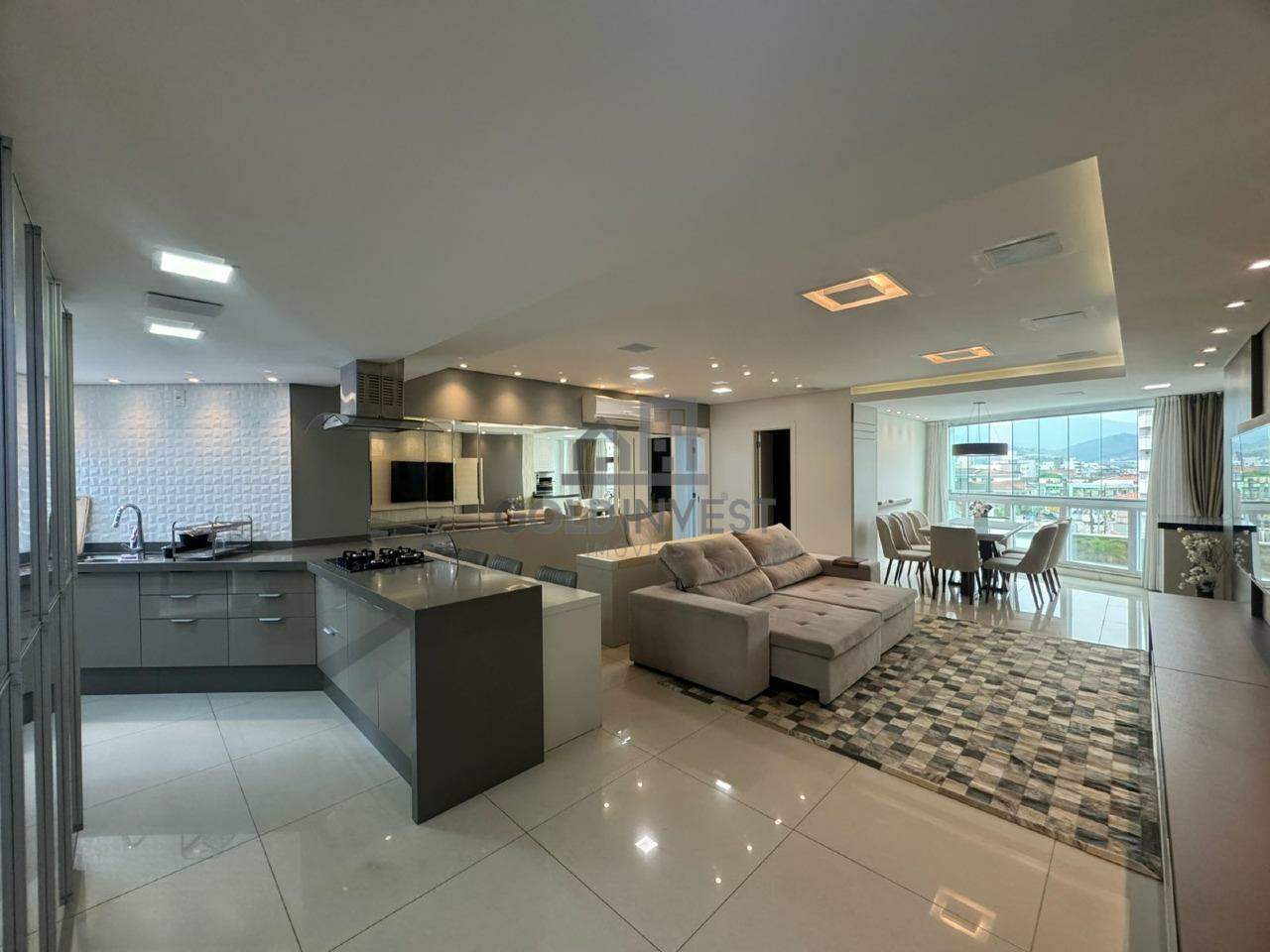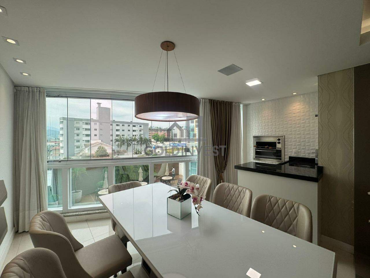 Conta com 3 suítes, sendo 1 delas com sacada, lavabo social, sala de estar e jantar, cozinha com móveis planejados, área de serviço com sacada estendida, churrasqueira e 2 vagas de garagem.